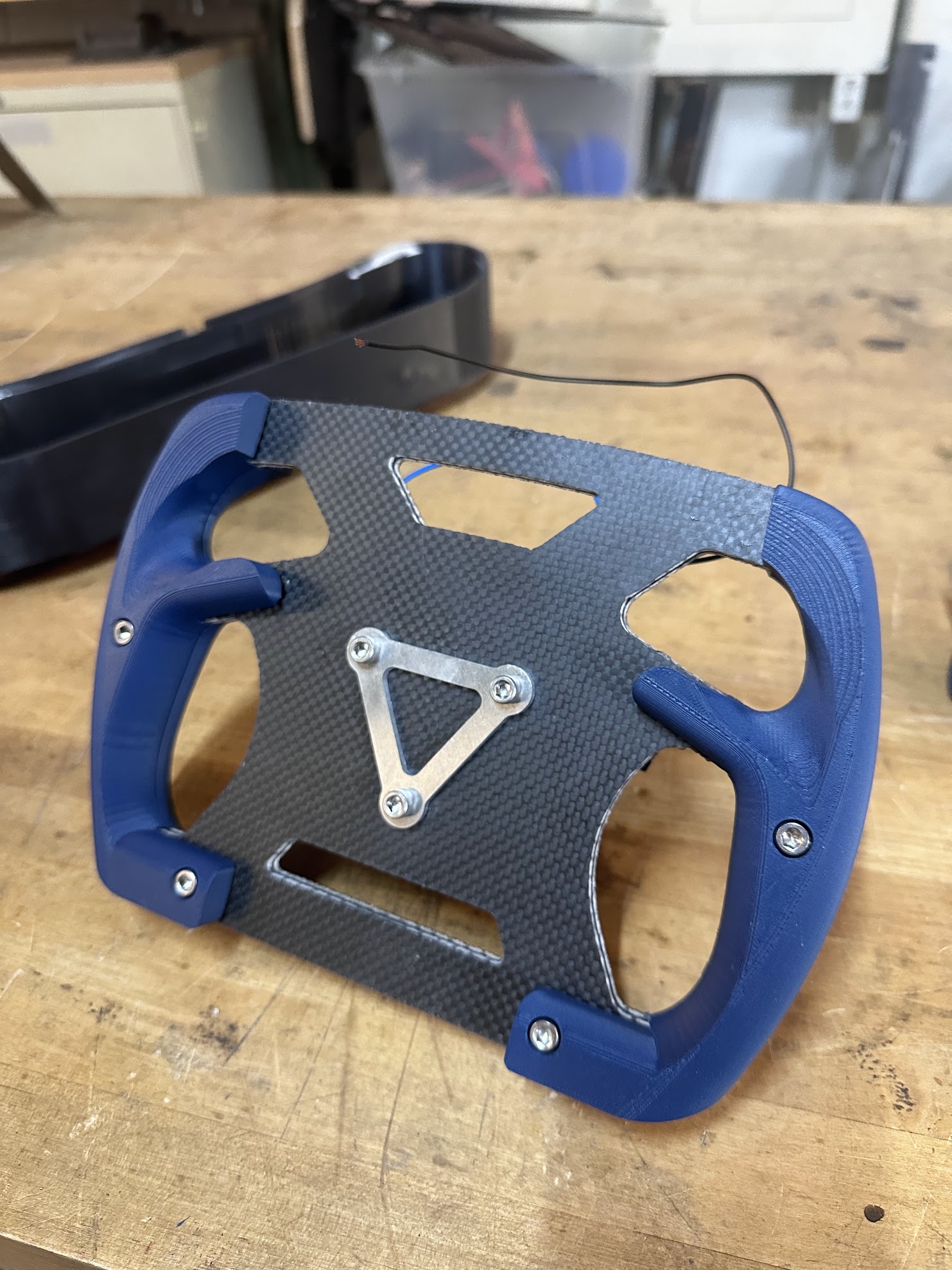 I designed the the steering wheel used in the car: including the design, ergonomics, and integration of a button control on the back.
